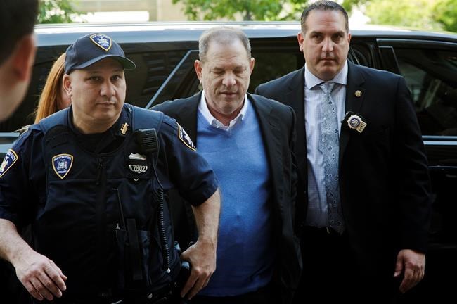 Harvey Weinstein is escorted into court, Friday, May 25, 2018, in New York. The movie mogul turned himself in at a police precinct earlier Friday. (AP Photo/Mark Lennihan)